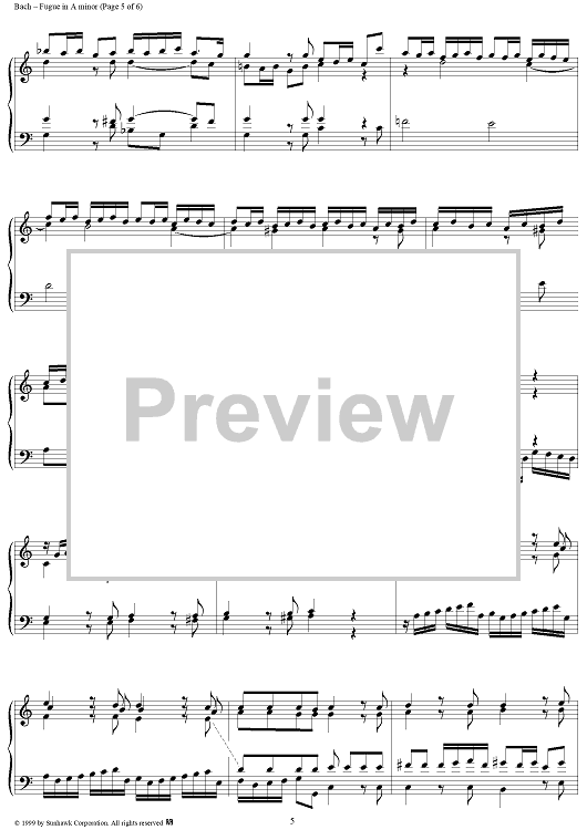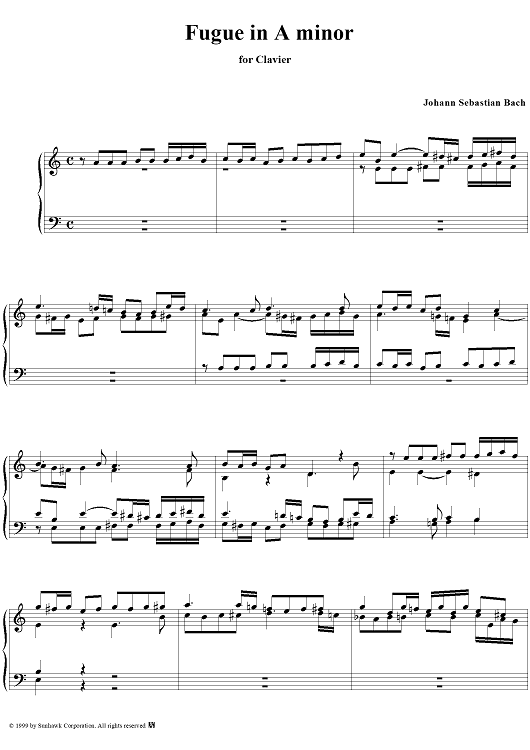 Digital Sheet Music for Fugue in A Minor, BWV947 by Johann Sebastian Bach scored for Piano Solo; id:277530