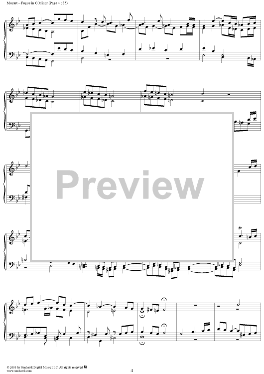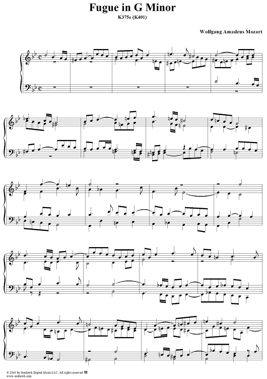 Digital Sheet Music for Fugue in G Minor, K375e (K401) by Wolfgang Amadeus Mozart scored for Piano Solo; id:292330