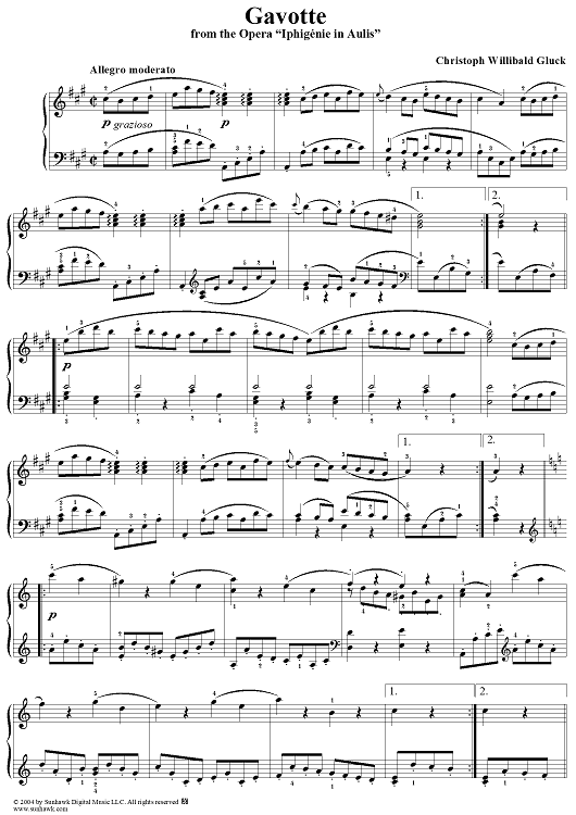 Digital Sheet Music for Gavotte from the Opera "Iphigenie in Aulis" by Christoph Willibald Glück scored for Piano Solo; id:295634