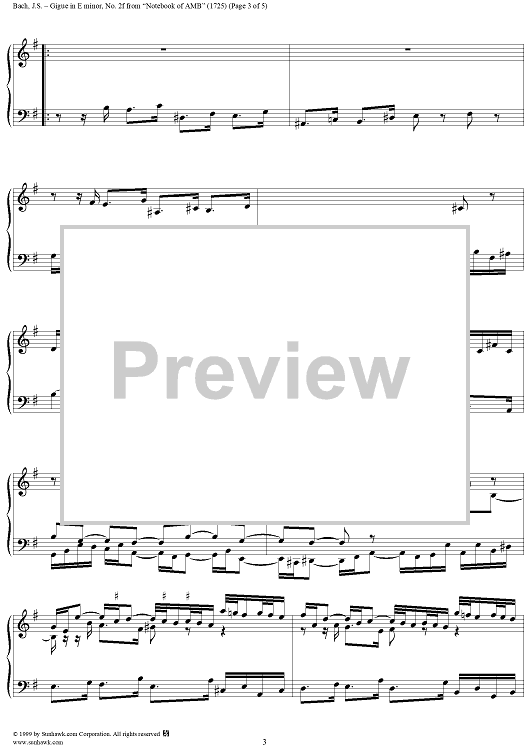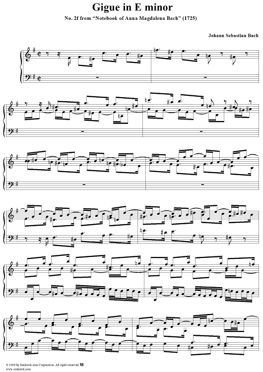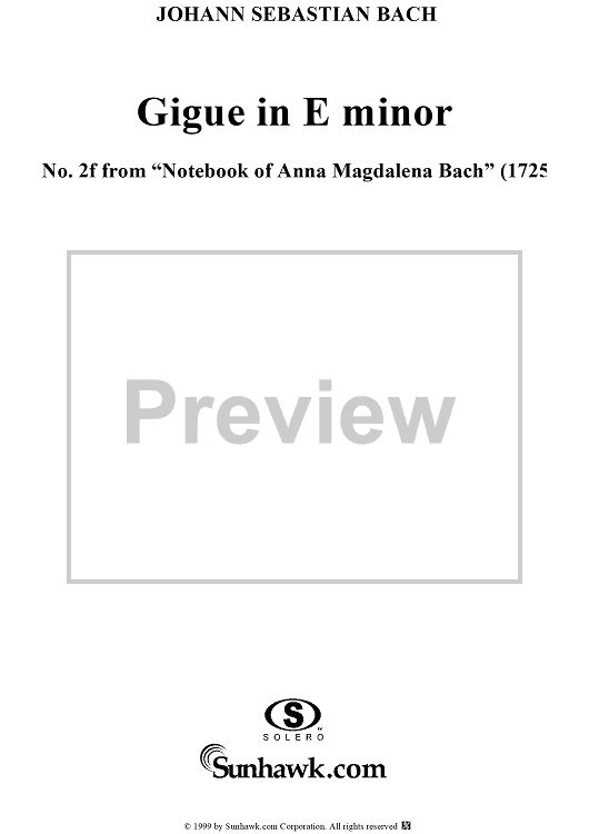 Digital Sheet Music for Gigue in E Minor from the Notebook of Anna Magdelena Bach by Johann Sebastian Bach scored for Piano Solo; id:241113
