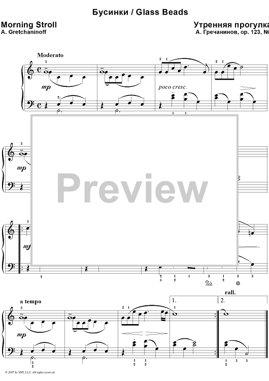Digital Sheet Music for Glass Beads. 1. Morning Stroll by Alexander Gretchaninoff scored for Piano Solo; id:364015