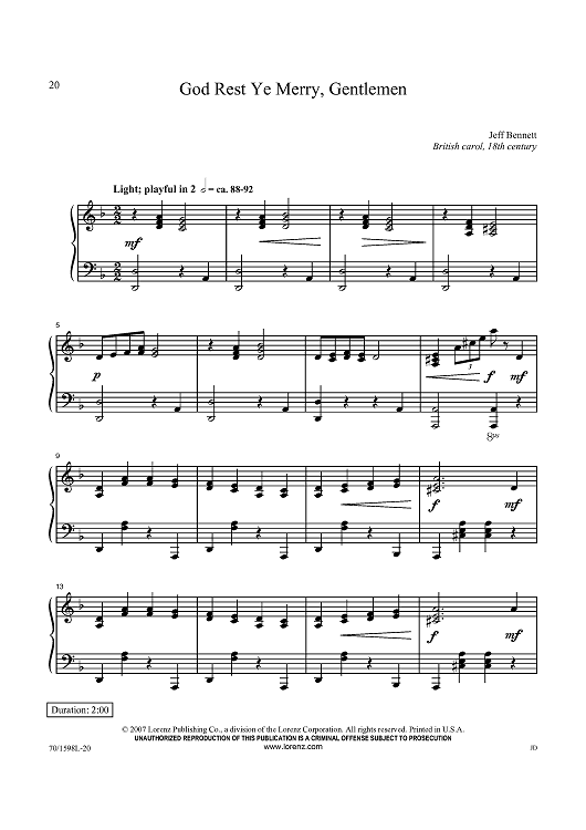 Digital Sheet Music for God Rest Ye Merry, Gentlemen by Jeff Bennett, British carol scored for Piano Solo; id:434687