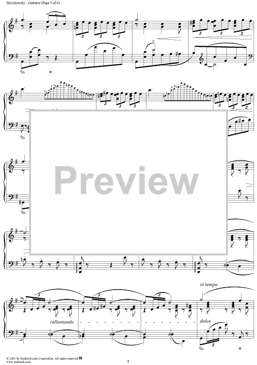 Digital Sheet Music for Guitarre, Op. 45, No. 2 by Moritz Moszkowski scored for Piano Solo; id:252369