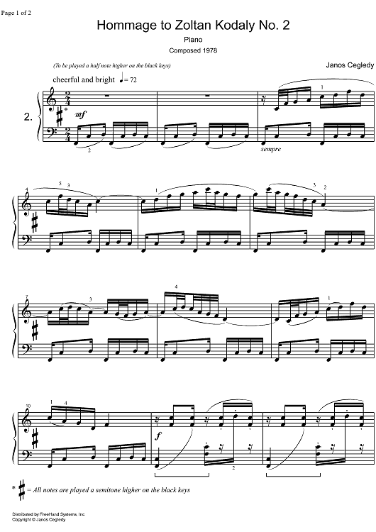 Digital Sheet Music for Hommage to Zoltan Kodaly No. 2 by , Janos Cegledy scored for Piano Solo; id:334257
