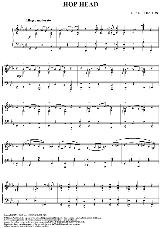 Digital Sheet Music for Hop Head by Duke Ellington scored for Piano Solo; id:119931