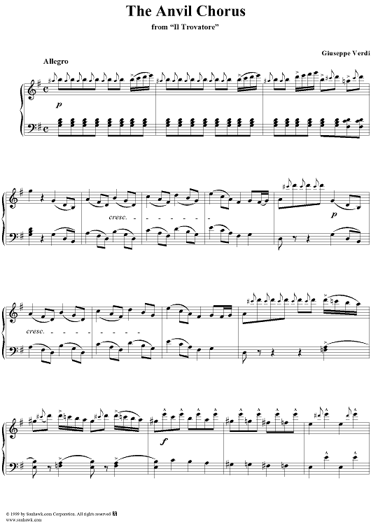 Digital Sheet Music for Il Trovatore - Anvil Chorus - From "Il Trovatore" by Giuseppe Verdi scored for Piano Solo; id:264738