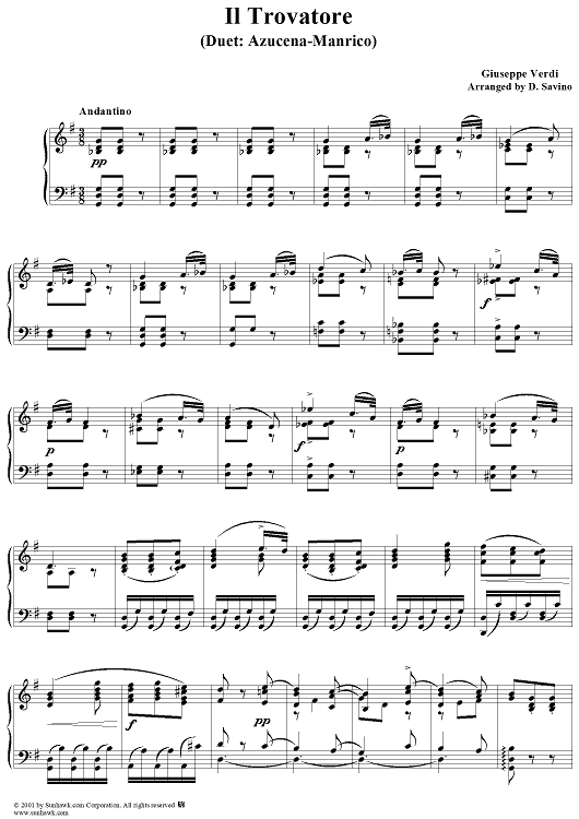 Digital Sheet Music for Il Trovatore - Duet Azucena-Manrico by Giuseppe Verdi, D. Savino scored for Piano Solo; id:263239