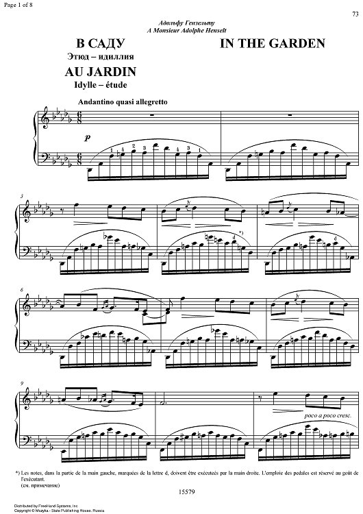 Digital Sheet Music for In the Garden - Study by Mily Balakirev scored for Piano Solo; id:337155