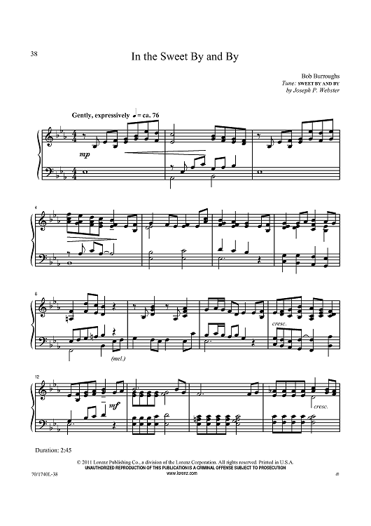 Digital Sheet Music for In the Sweet By and By by Joseph P. Webster, Bob Burroughs scored for Piano Solo; id:433988