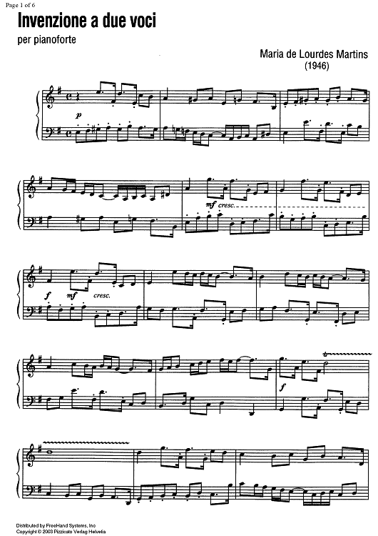 "Invenzione a due voci - Invenzione a tre voci" Sheet Music by Maria de Lourdes Martins