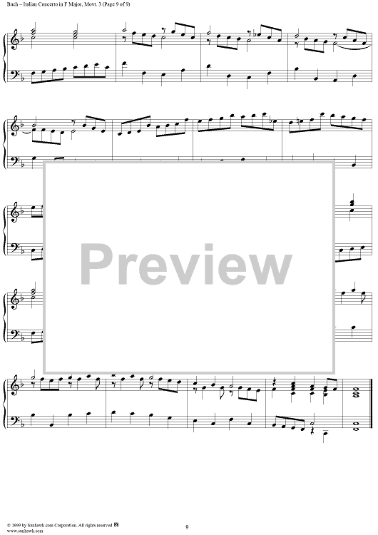 Digital Sheet Music for Italian Concerto, Presto by Johann Sebastian Bach scored for Piano Solo; id:118341