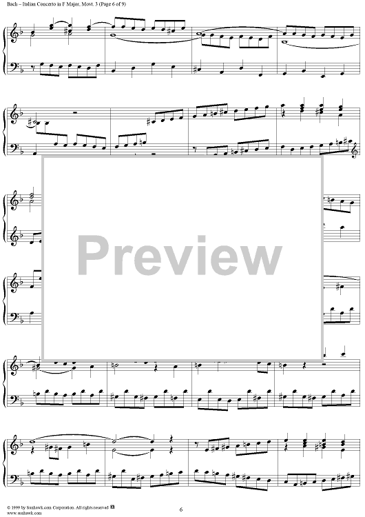 "Italian Concerto, Presto" Sheet Music by Johann Sebastian Bach
