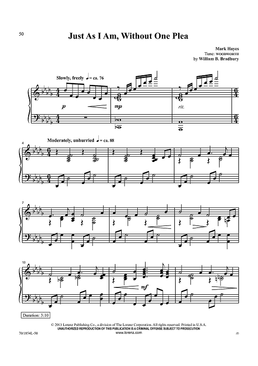 Digital Sheet Music for Just As I Am, Without One Plea by Mark Hayes, William B. Bradbury scored for Piano Solo; id:434768