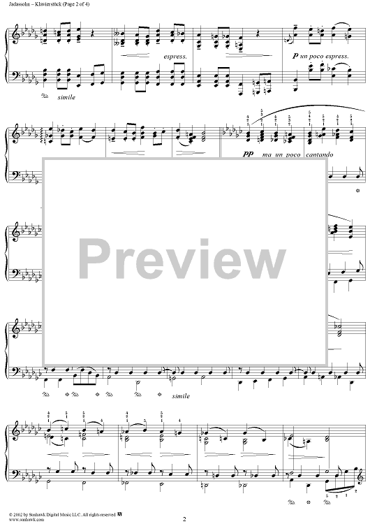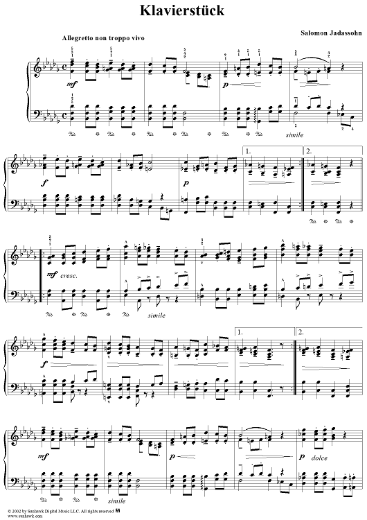 Digital Sheet Music for Klavierstuck by Salomon Jadassohn scored for Piano Solo; id:251628