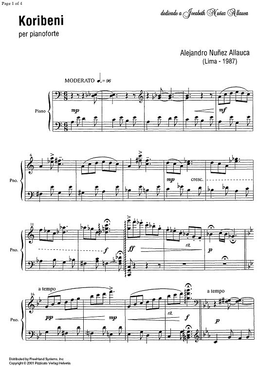 Digital Sheet Music for Koribeni by , Alejandro Núñez Allauca scored for Piano Solo; id:336259