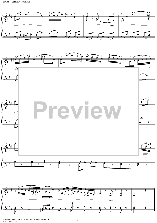 Digital Sheet Music for Larghetto by Wolfgang Amadeus Mozart scored for Piano Solo; id:253161