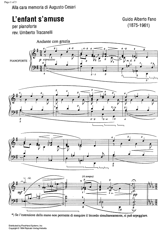 "L'enfant s'amuse" Sheet Music by Guido Alberto Fano