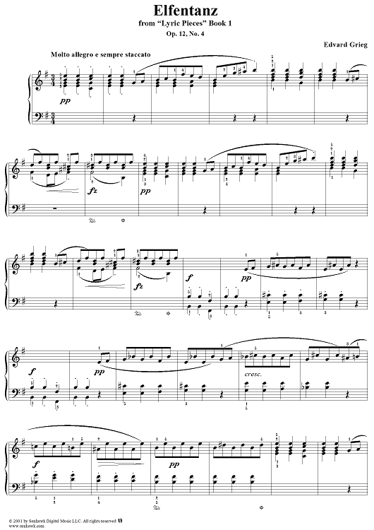 Digital Sheet Music for Lyric Pieces Book 1, op. 12, no. 4: Elfentanz (Fairy Dance) by Edvard Grieg scored for Piano Solo; id:267751