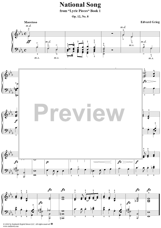 Digital Sheet Music for Lyric Pieces Book 1, op. 12, no. 8: National Song by Edvard Grieg scored for Piano Solo; id:267609