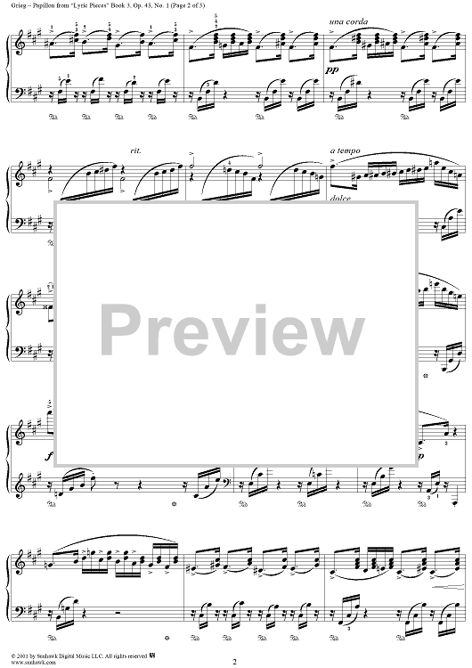 "Lyric Pieces Book 3, op. 43, no. 1: Papillon (Butterfly)" Sheet Music by Edvard Grieg