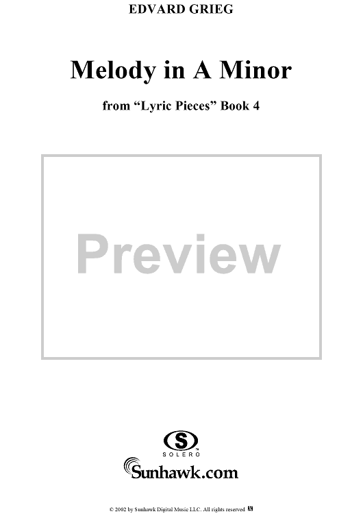 "Lyric Pieces Book 4, op. 47, no. 3: Melody in A minor" Sheet Music by Edvard Grieg