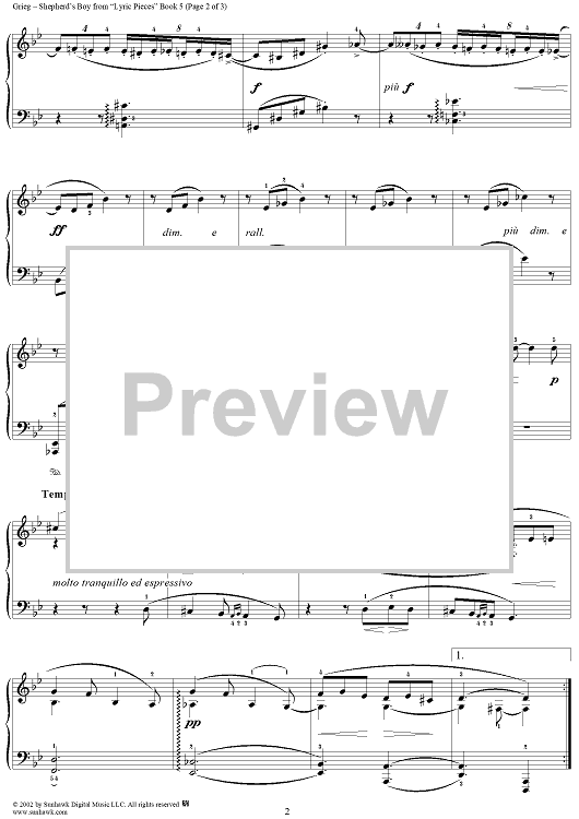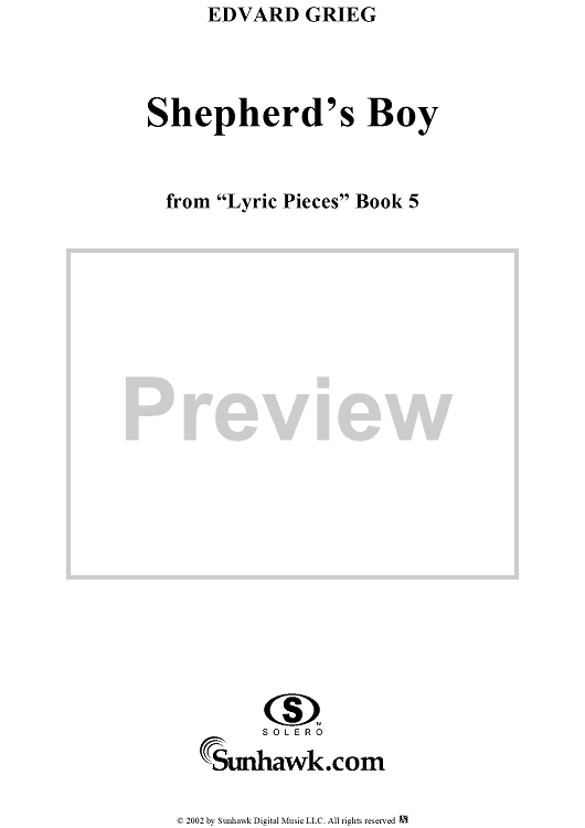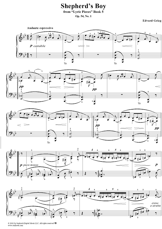Digital Sheet Music for Lyric Pieces Book 5, op. 54, no. 1: Shepherd's Boy by Edvard Grieg scored for Piano Solo; id:267613