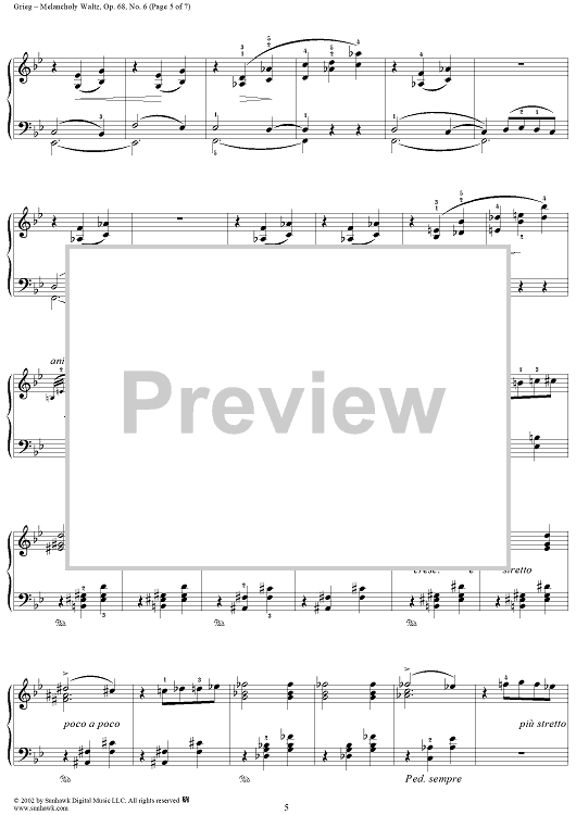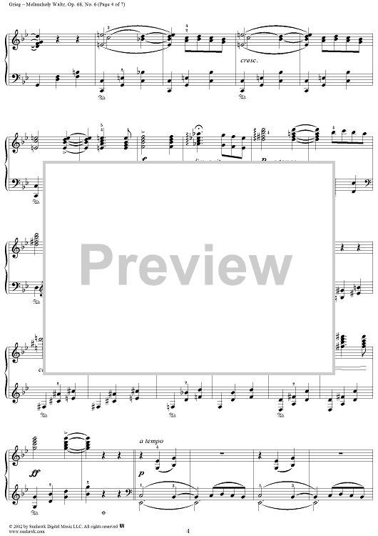 Digital Sheet Music for Lyric Pieces Book 9, op. 68, no. 6: Melancholy Waltz by Edvard Grieg scored for Piano Solo; id:267748