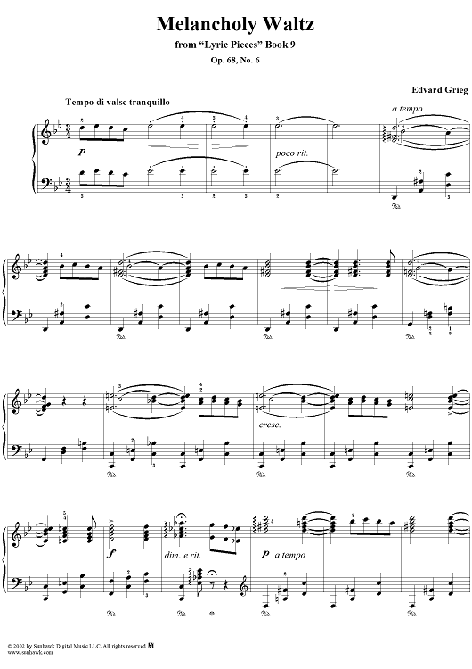 "Lyric Pieces Book 9, op. 68, no. 6: Melancholy Waltz" Sheet Music by Edvard Grieg