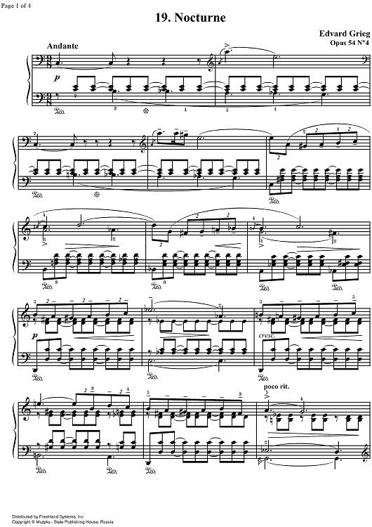 "Lyrical Pieces Op.54 No. 4 - Notturno" Sheet Music by Edvard Grieg