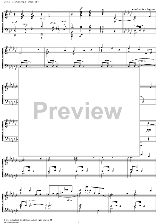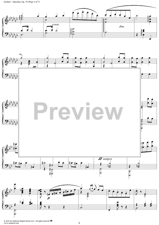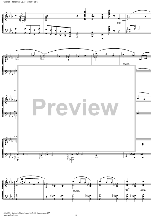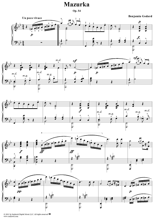 Digital Sheet Music for Mazurka, Op. 54 by Benjamin Godard scored for Piano Solo; id:294808