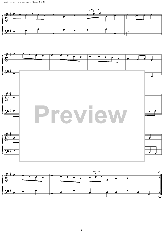 Digital Sheet Music for Menuet in G major from the Notebook of Anna Magdelena Bach by Johann Sebastian Bach scored for Piano Solo; id:110335