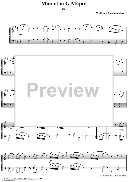 Digital Sheet Music for Menuett No 1 mit Trio, K1 by Wolfgang Amadeus Mozart scored for Piano Solo; id:262634