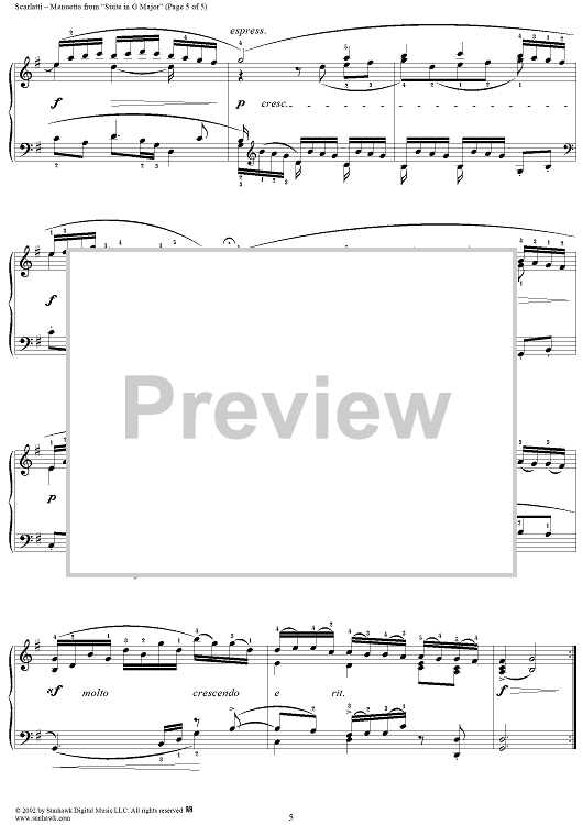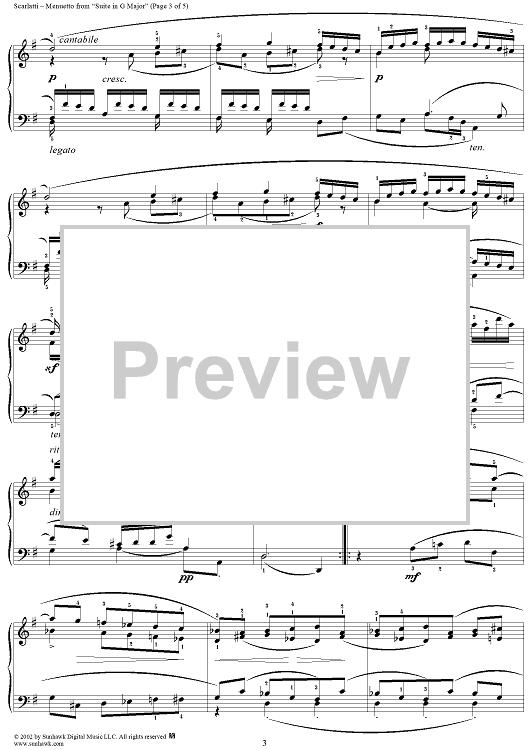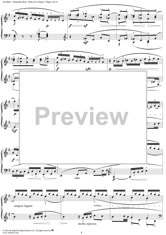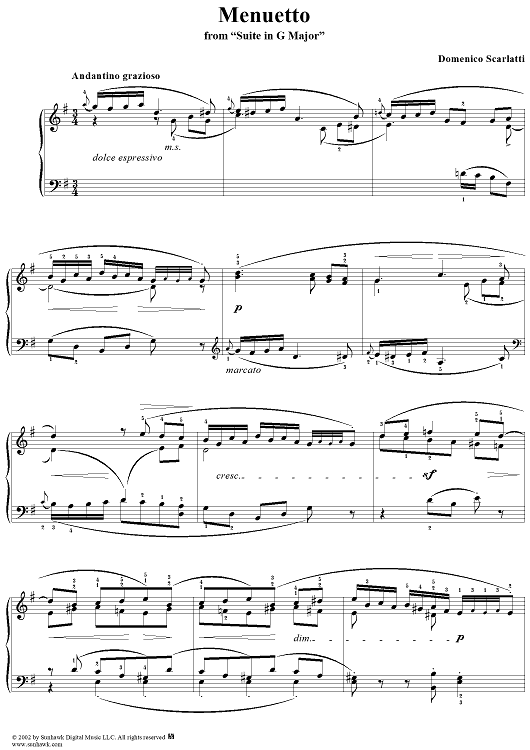 Digital Sheet Music for Menuetto by Domenico Scarlatti scored for Piano Solo; id:283679