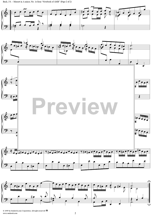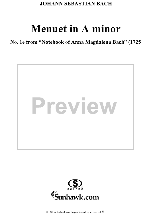 Digital Sheet Music for Minuet in A Minor from the Notebook of Anna Magdelena Bach by Johann Sebastian Bach scored for Piano Solo; id:241110