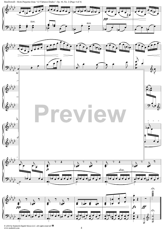 Digital Sheet Music for Moto Perpetuo, Op. 46, No. 2 by Edward MacDowell scored for Piano Solo; id:295560