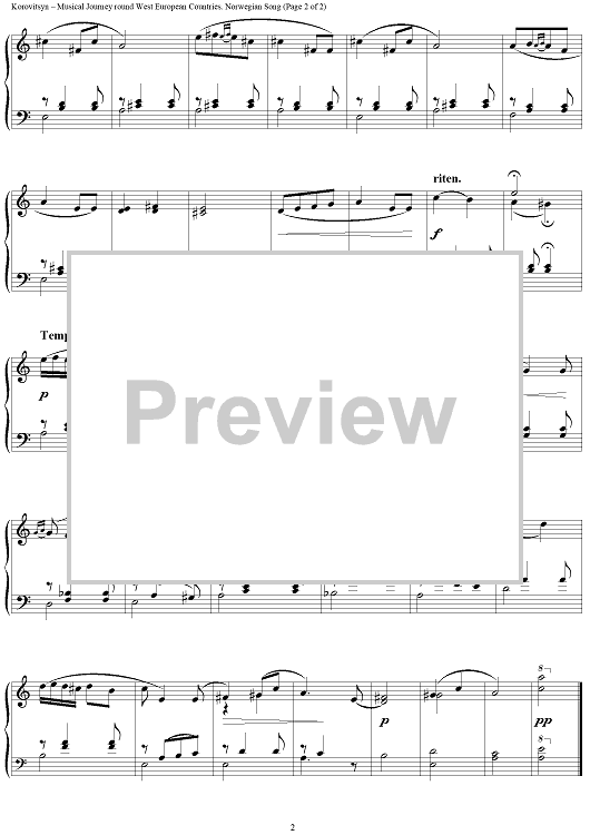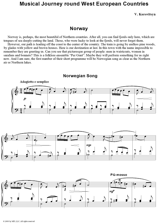 Digital Sheet Music for Musical Journey. 17. Norway. Norwegian Song by , Vladimir Korovitsyn scored for Piano Solo; id:403492