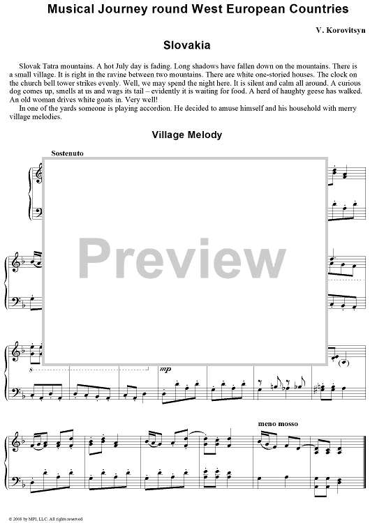 Digital Sheet Music for Musical Journey. 21. Slovakia. Village Melody by , Vladimir Korovitsyn scored for Piano Solo; id:403435