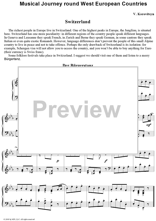 Digital Sheet Music for Musical Journey. 24. Switzerland. Der Bürgerstanz by , Vladimir Korovitsyn scored for Piano Solo; id:403498