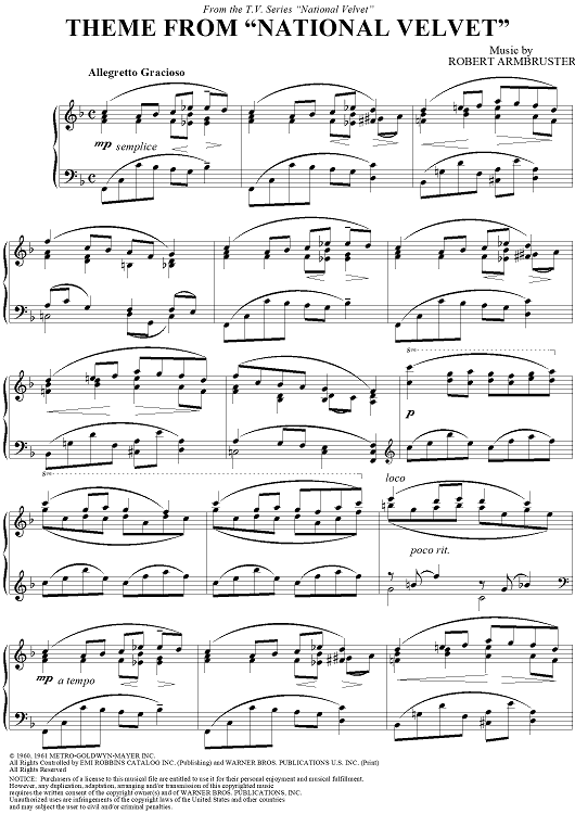 "National Velvet (Theme From)" Sheet Music by Robert Armbruster