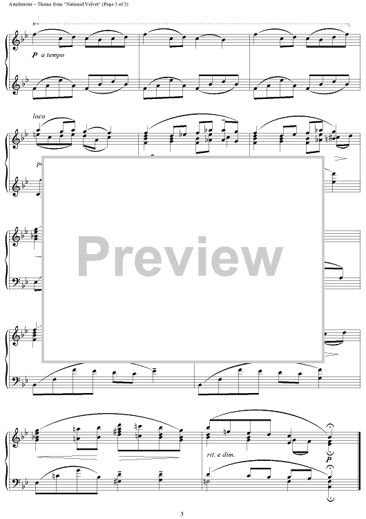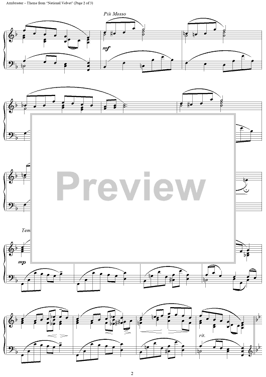 Digital Sheet Music for National Velvet (Theme From) by Robert Armbruster scored for Piano Solo; id:276930