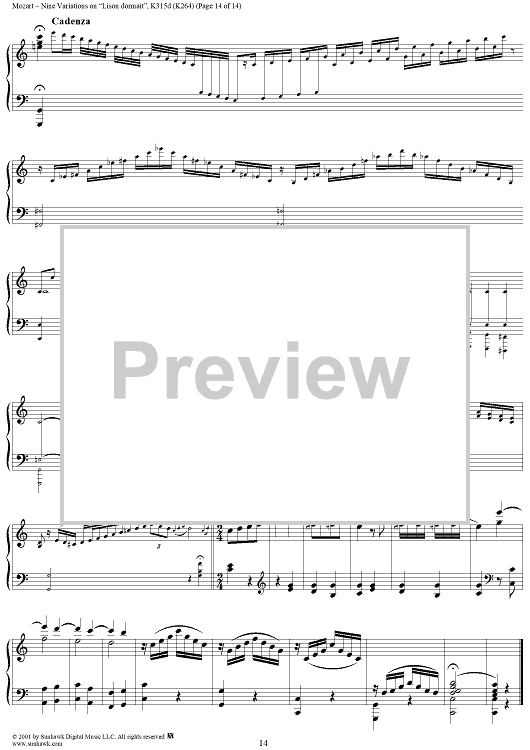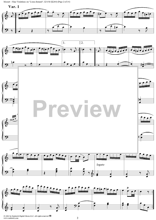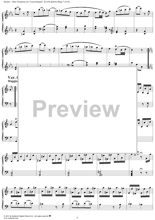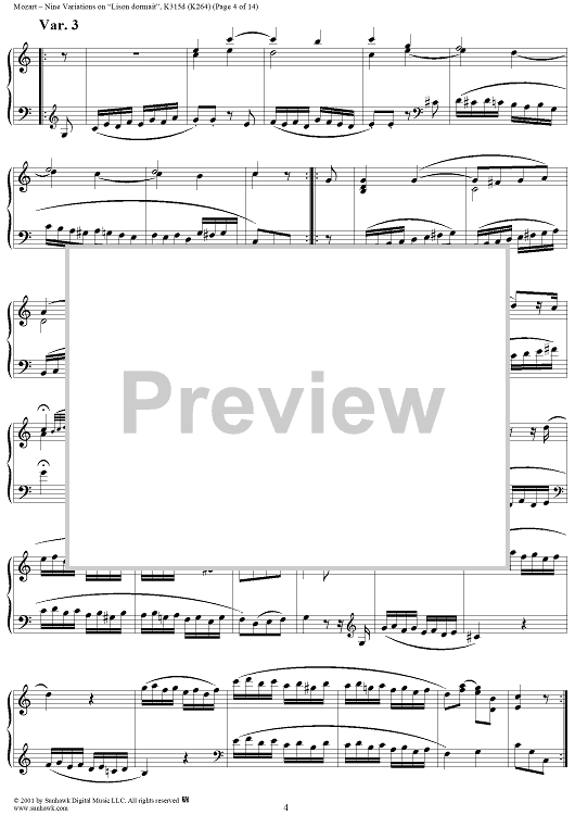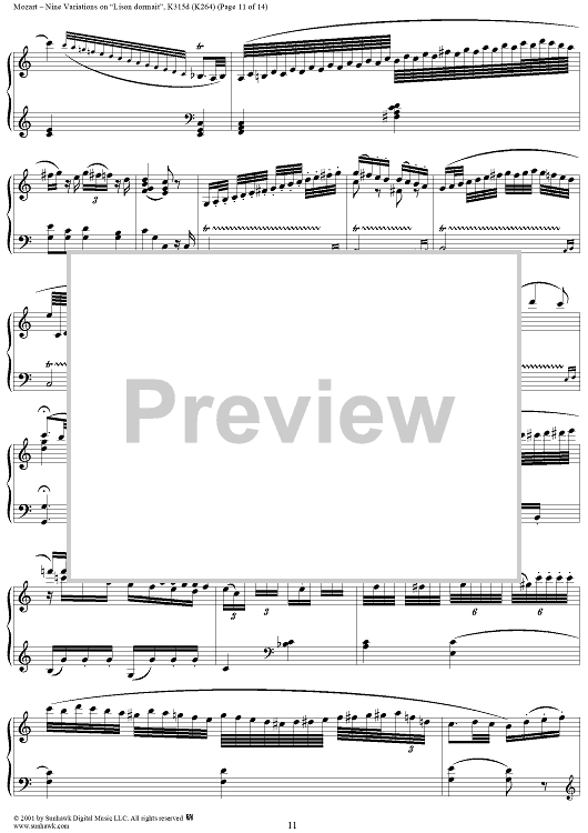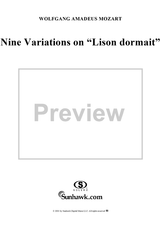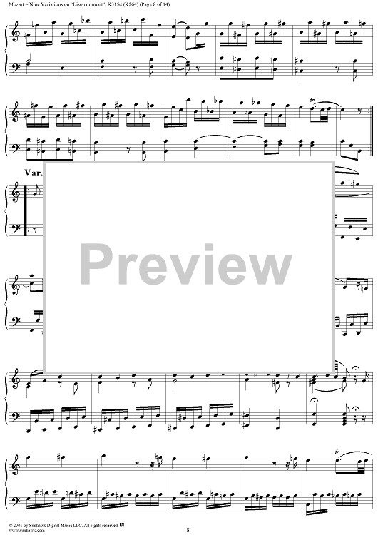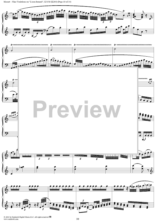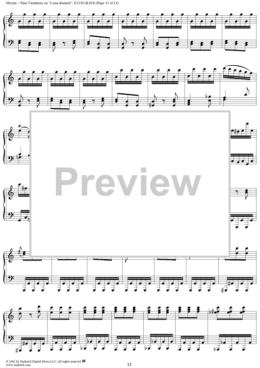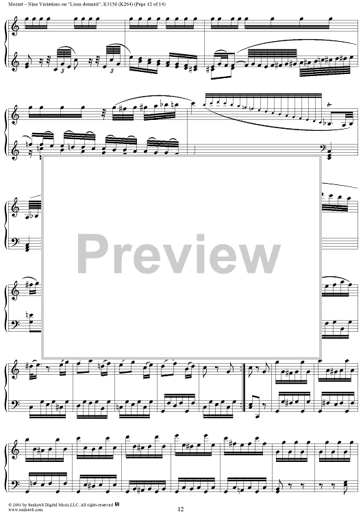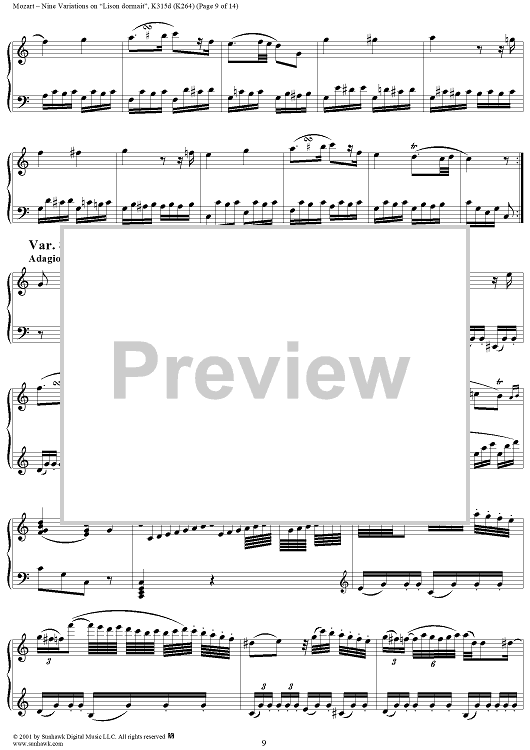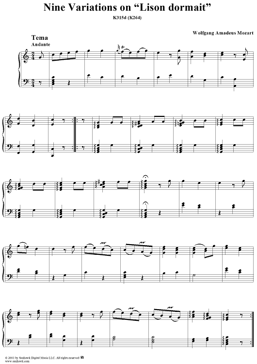 Digital Sheet Music for Nine Variationen, K315d (K264) by Wolfgang Amadeus Mozart scored for Piano Solo; id:273570