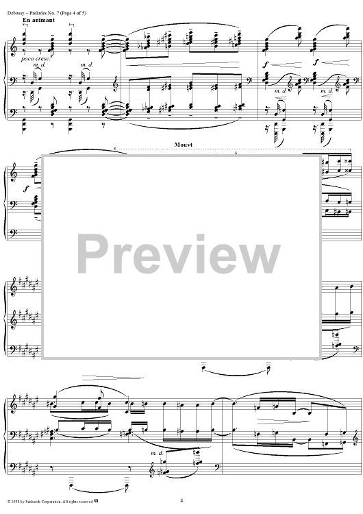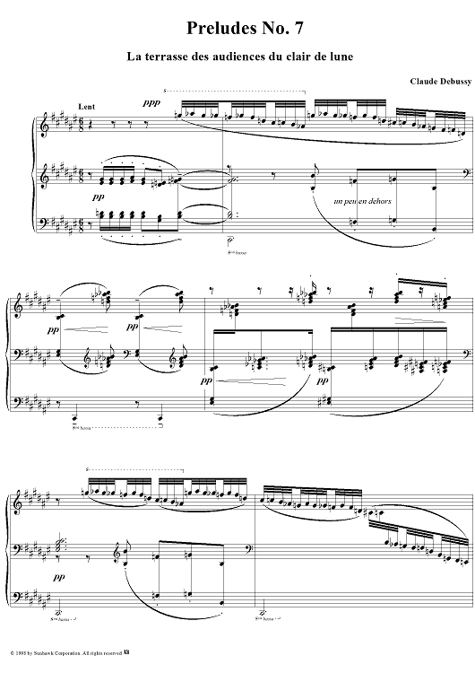 Digital Sheet Music for No. 7: La terrasse des audiences du clair de lune by Claude Debussy scored for Piano Solo; id:109655