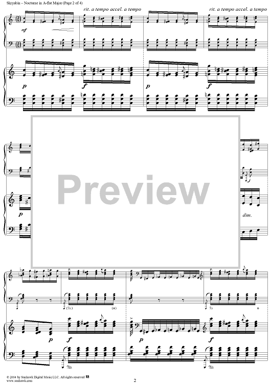 Digital Sheet Music for Nocturne in A-flat Major by Alexander Scriabin scored for Piano Solo; id:295326