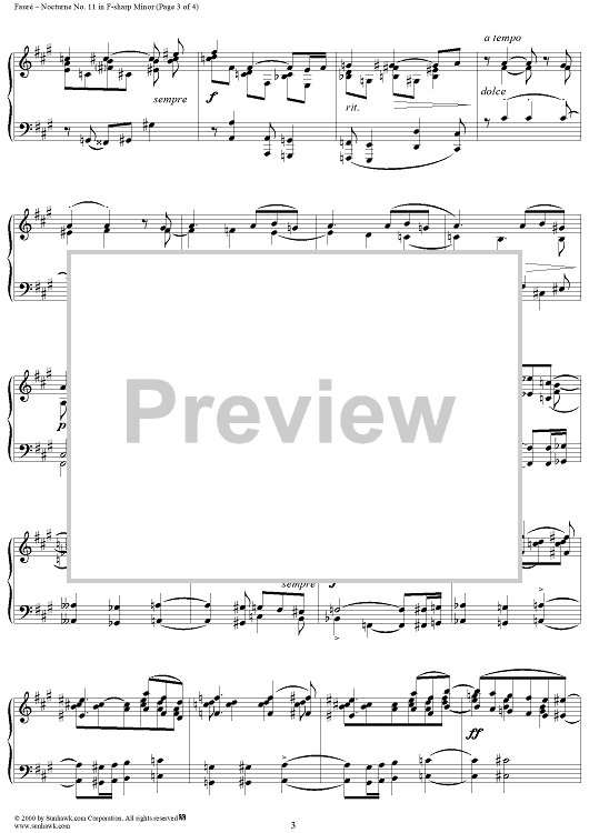Digital Sheet Music for Nocturne no. 11 in F-sharp Minor - op. 104/1 by Gabriel Fauré scored for Piano Solo; id:269863