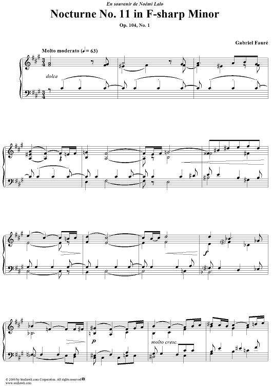 "Nocturne no. 11 in F-sharp Minor - op. 104/1" Sheet Music by Gabriel Fauré