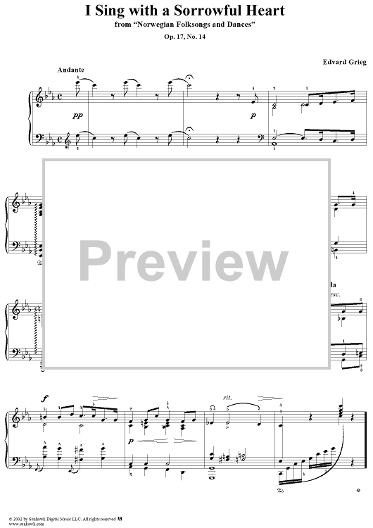 Digital Sheet Music for Norwegian Folksongs and Dances Op.17 No.14, I Sing with a Sorrowful Heart by Edvard Grieg scored for Piano Solo; id:267915