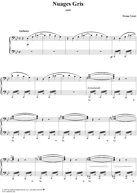 "Nuages Gris, S199" Sheet Music by Franz Liszt