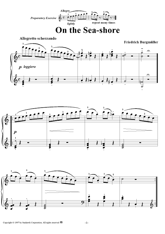 Digital Sheet Music for On the Seashore by Friedrich Burgmüller scored for Piano Solo; id:94967