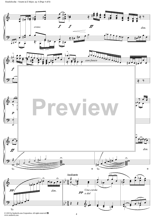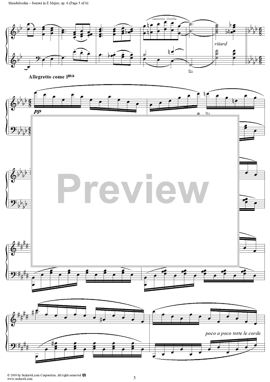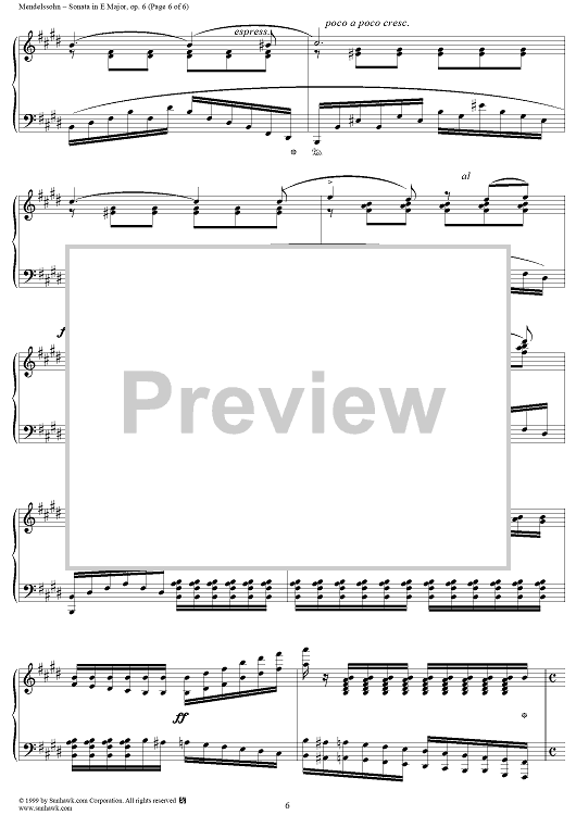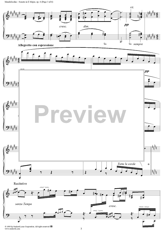 Digital Sheet Music for Piano Sonata in E Major, Op. 6 - Recitativo (etc.) by Felix Mendelssohn scored for Piano Solo; id:252020