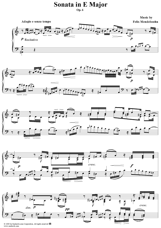 "Piano Sonata in E Major, Op. 6 - Recitativo (etc.)" Sheet Music by Felix Mendelssohn